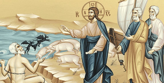 Στὸ Εὐαγγελικὸ Ἀνάγνωσμα αὐτῆς τῆς Κυριακῆς ἀκοῦμε τὸ θαῦμα τῆς θεραπείας τοῦ δαιμονιζομένου τῶν Γαδαρηνῶν. Στὴ χώρα αὐτὴ ὑπῆρχε ἕνας δαιμονισμένος ποὺ εἶχε κυριευθεῖ ἀπὸ πολλὰ δαιμόνια καὶ ἦταν ὁ φόβος καὶ ὁ τρόμος τῆς περιοχῆς: Γύριζε γυμνὸς καὶ κατοικοῦσε στὰ μνήματα. Τὸν ἔδεναν μὲ ἁλυσίδες καὶ δεσμά, ἀλλὰ αὐτὸς τὰ ἔσπαζε καὶ ἔφευγε στὴν ἔρημο. Μόλις λοιπὸν εἶδε τὸν Κύριο, ἔπεσε στὰ πόδια Του καὶ φώναξε, δηλαδὴ φώναξαν τὰ δαιμόνια ποὺ ἦταν μέσα του:
